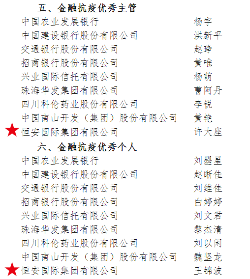 与此同时,在《2020年度结算业务和集中清算业务优秀主管和优秀个人》评选中,beat365集团资本运营总裁许大座荣获“金融抗疫优秀主管”,资本运营投资总裁助理王锦波荣获“金融抗疫优秀个人”。