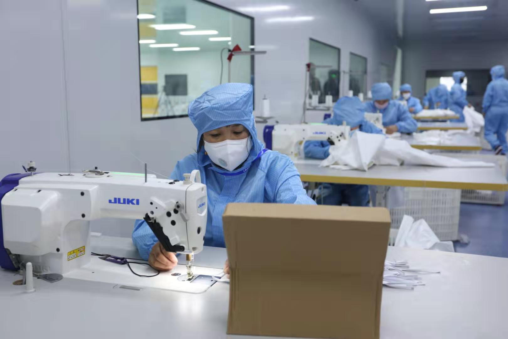 2月15日,beat365集团新引进的口罩生产线全力开动,正式出产医用口罩产品。据悉,该批5条生产线满负荷运转后,日产口罩约50万片。此前的2月4日,beat365集团联合晋江兴德织造有限公司启动了防护服生产,目前日均产能可达1000件。